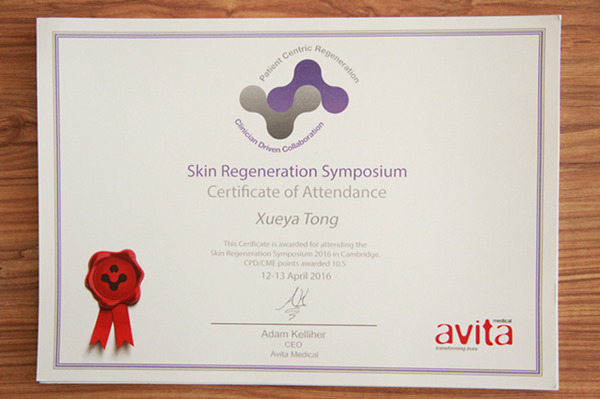 历经长达数月的学习,并结合回国后的技术改善、理论知识的提升,并完成《Recell技术临床实践操作改良》的结业论文,较终通过主办方知名专家组认证,准予毕业,并发放毕业证书!